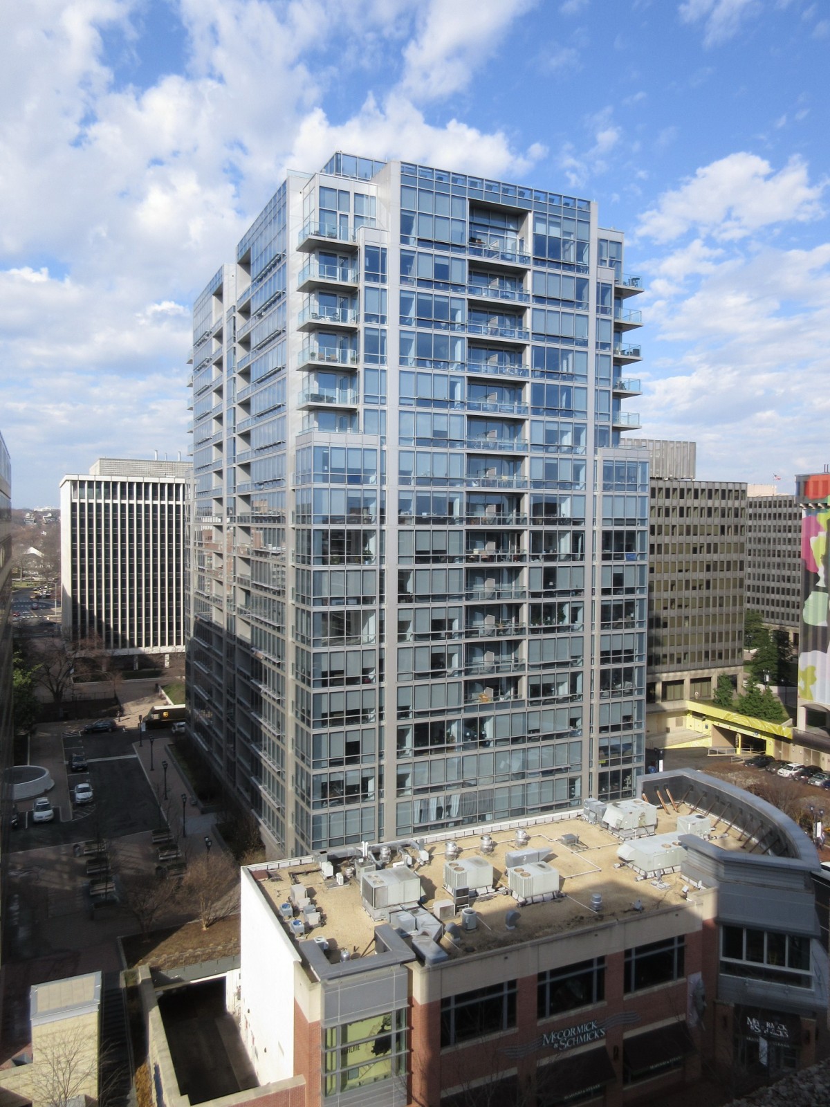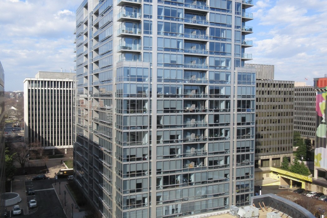 Completed in 2009, 220 20th Street is an eleven-story apartment building in the Crystal City neighborhood of Arlington, Virginia. With 265 units, the building includes a rooftop pool and below-grade parking. The facade is primarily comprised of aluminum-framed window wall and curtain wall assemblies with metal panel cladding in a barrier configuration. The building has been experiencing water leakage since construction. Multiple investigations and repairs have been undertaken to address the leaks by WJE and other consulting firms.