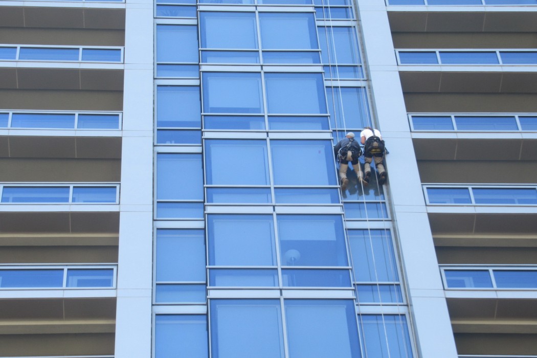 WJE performed field water penetration testing to identify and confirm the point(s)-of-water entry and leakage path(s) for reported rainwater penetration through the window and balcony assemblies that have resulted in water damage at the building interior. WJE utilized a combination of field-testing delivery methods for this project in general conformance with applicable industry standards.