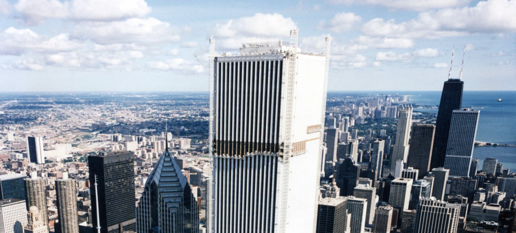 Completed in 1973, the eighty-three-story Amoco Building is a dominant feature of Chicago's skyline. Fortified by a tubular steel frame and originally clad with 44,000 panels of 1 1/4-inch-thick white Italian Carrara marble, the skyscraper was a structural feat, setting the record for the world's tallest marble-clad building.
