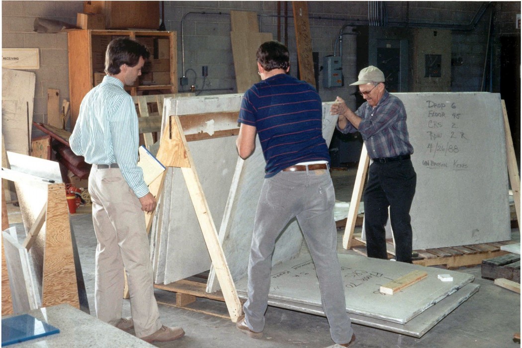 WJE determined that exposure to cyclic temperatures caused the thin marble panels to expand and contract inconsistently, resulting in progressive cracking that produced the bowing panel profile. In-house laboratory testing revealed that the marble had experienced a 40 percent reduction in strength and was forecast to lose an additional 30 percent over the next ten years. Additionally, WJE engineers utilized state-of-the-art methods, including 3D computer analysis, in situ load testing, and wind tunnel studies, to establish the maximum wind load pressures the panels were required to withstand. WJE found that the building experienced a wind load 20 percent greater than code required. Given the high wind demand and loss of strength, total recladding was the only viable solution. After an exhaustive search for white stone that closely resembled the original marble, WJE conducted a battery of accelerated weathering tests on each sample; full-scale mock-ups of the specimens that performed best were then subjected to wind and pressure tests. Based on the results, WJE engineers recommended white Mt. Airy granite to replace the marble. In addition to managing the extensive recladding project, WJE engineers designed and tested a stronger connection system for the new, thicker panels and reinforced many of the building's below-grade columns to accommodate their additional weight. WJE's project involvement significantly extended the facade's physical life and preserved the building's signature look.