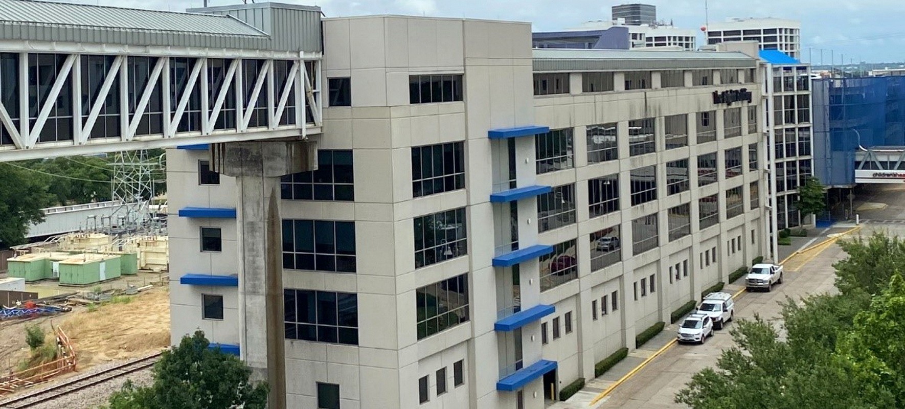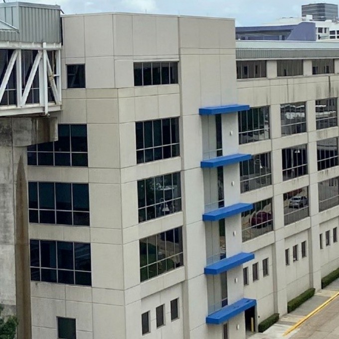 The Bright Building is a five-story rectangular office/administrative building at the south end of the Children’s Health (CH) campus, constructed in 1999. Floor 4 was added in 2003 as part of the adjacent skybridge construction. The exterior cladding is primarily comprised of precast panels, stucco, exterior insulation and finish system (EIFS), and aluminum-framed windows.