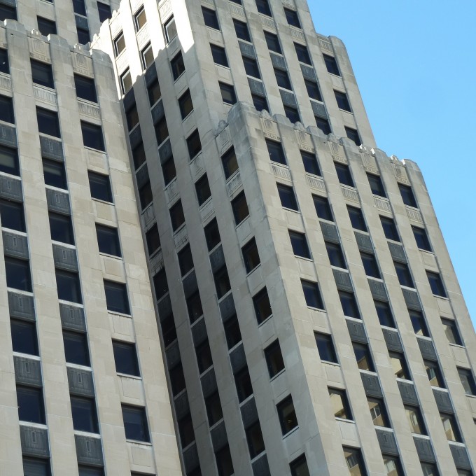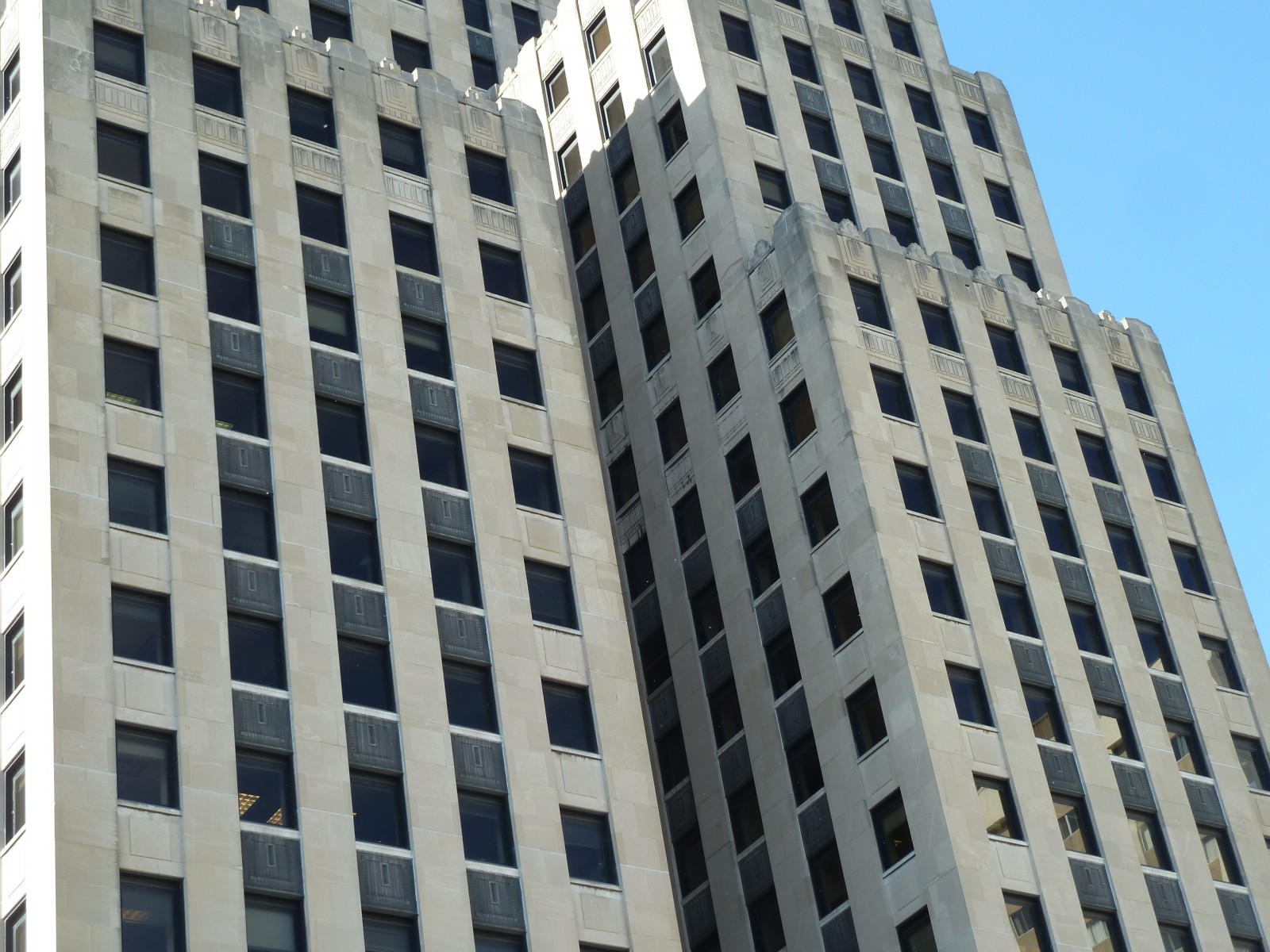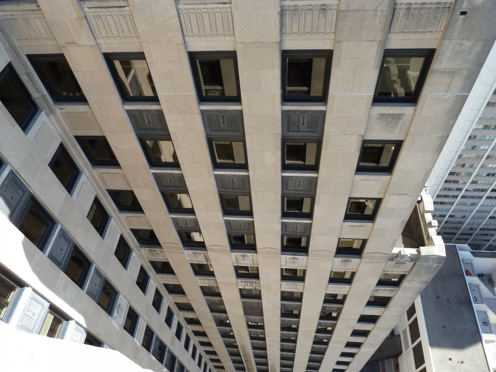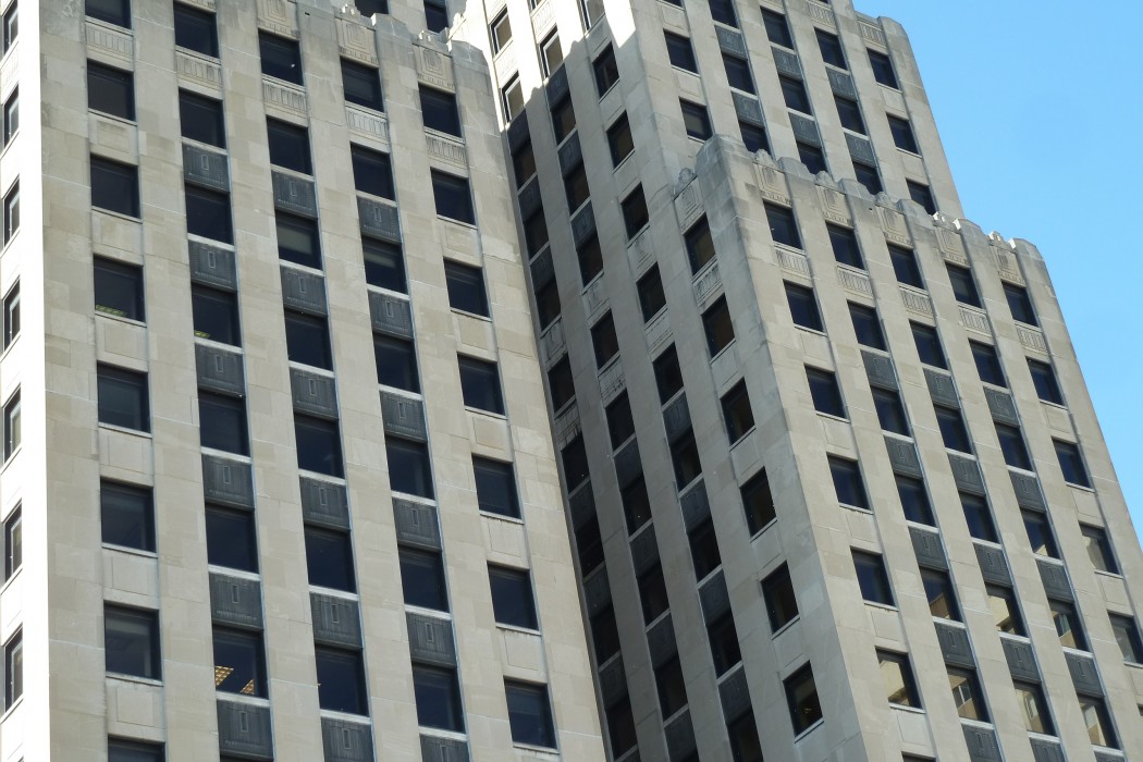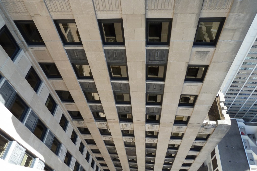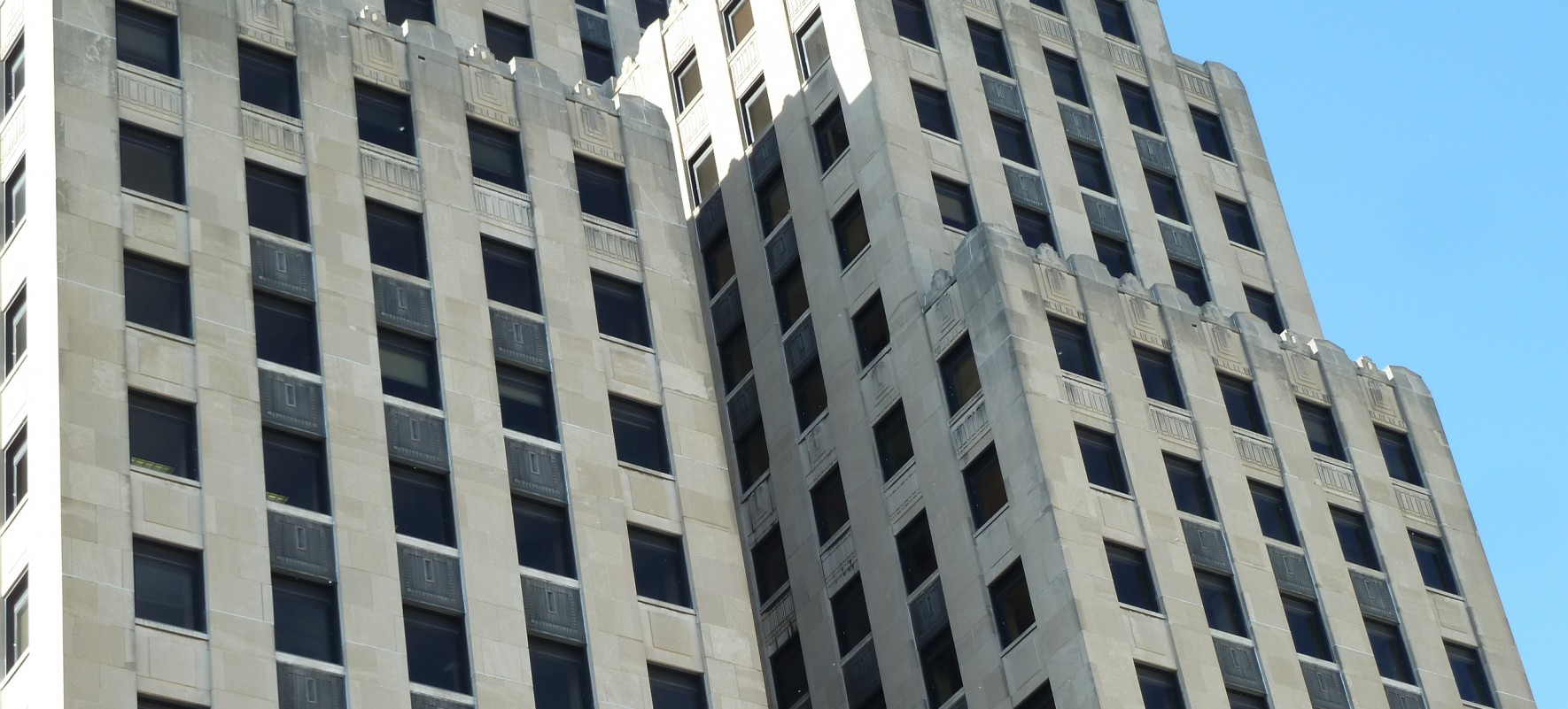 The First National Bank building complex consists of three interconnected buildings: the North Building, the East Tower, and the West Tower— the latter of which was the sole focus of the investigation. The West Tower was constructed circa 1931 and, at 417 feet tall, reigned as the tallest building in St. Paul for over fifty-five years. The West Tower is a 32-story stepped art deco structure with an Indiana limestone facade. Aluminum framed window units are present. The first floor level is clad with granite and the primary building frame consists of structural steel beams, columns, and concrete pan and joist floor systems.