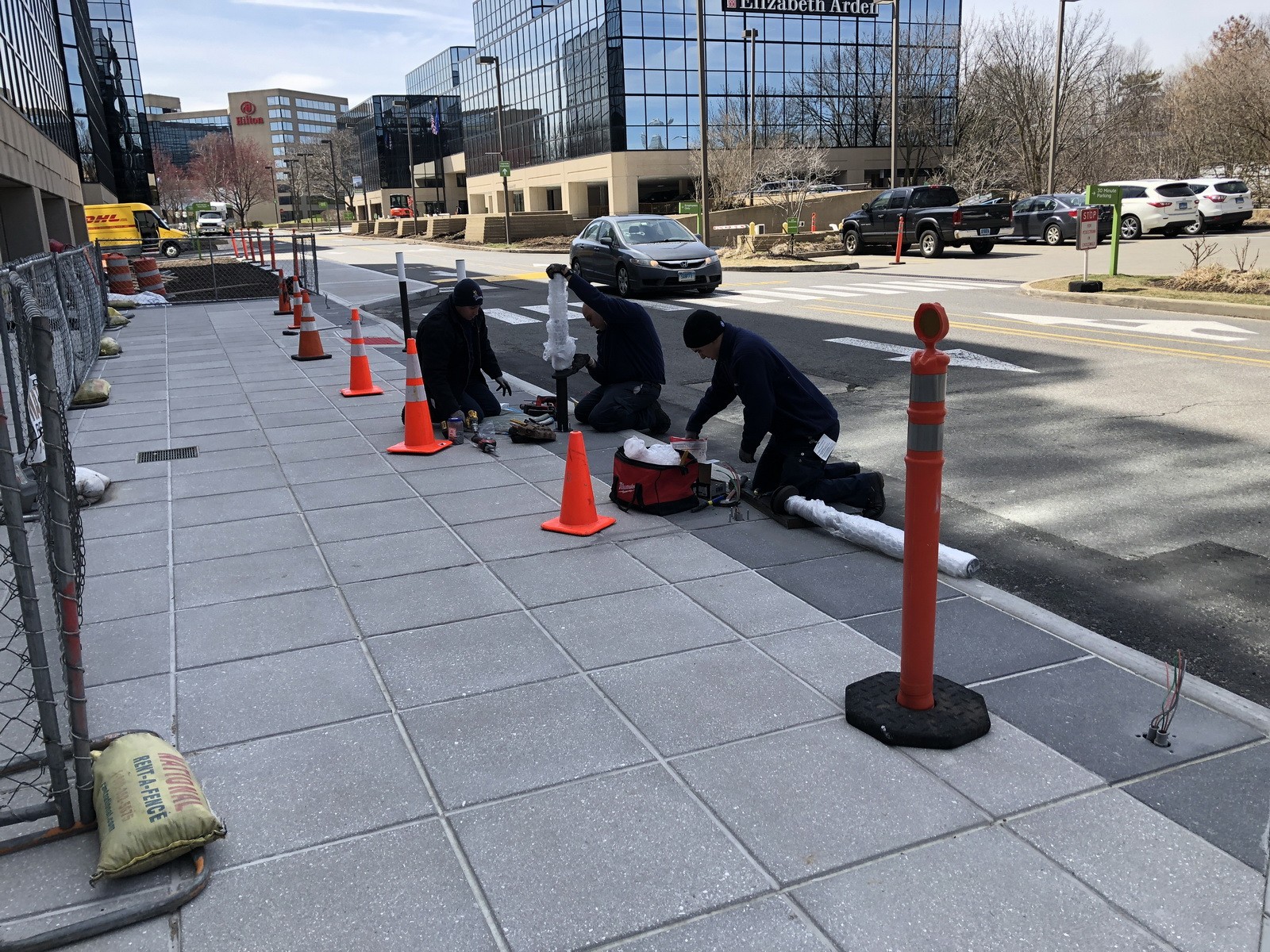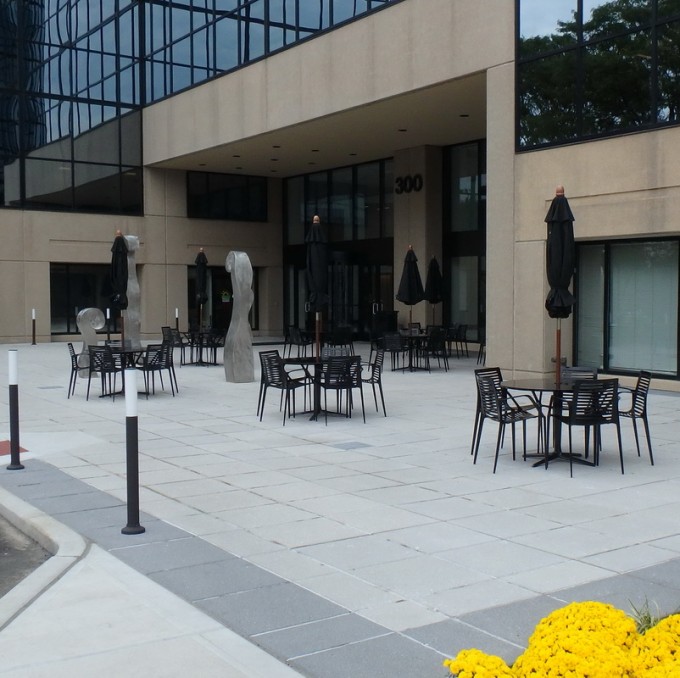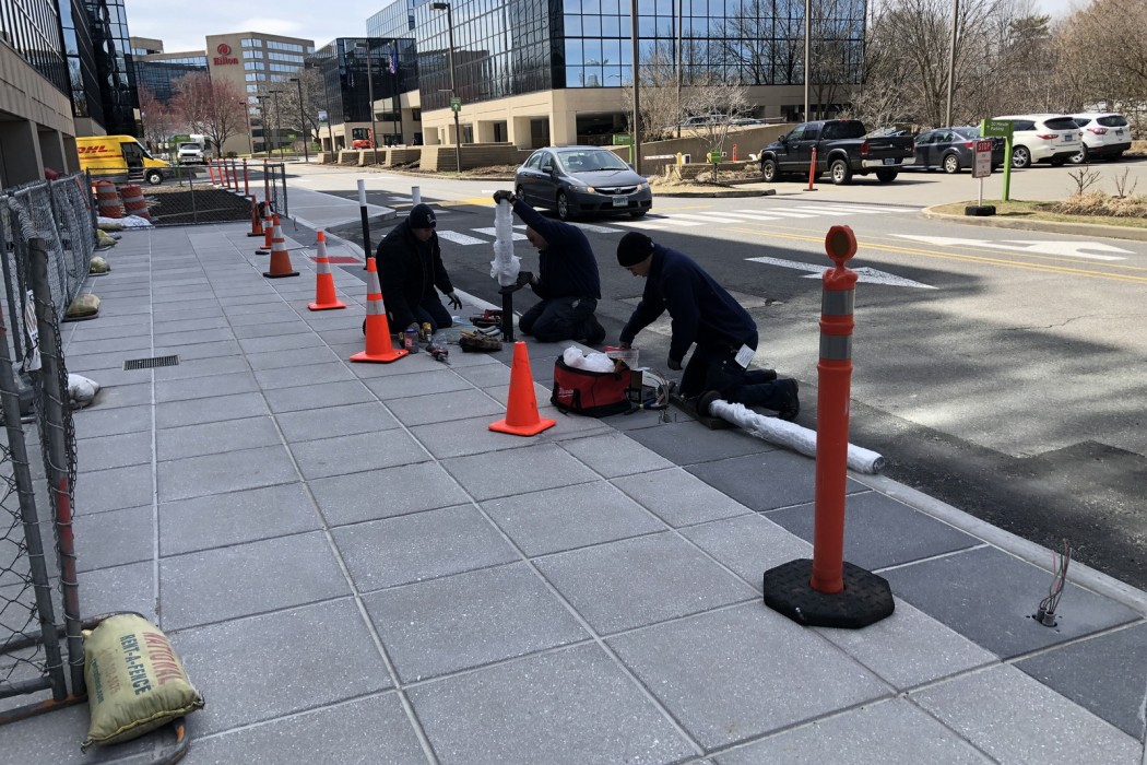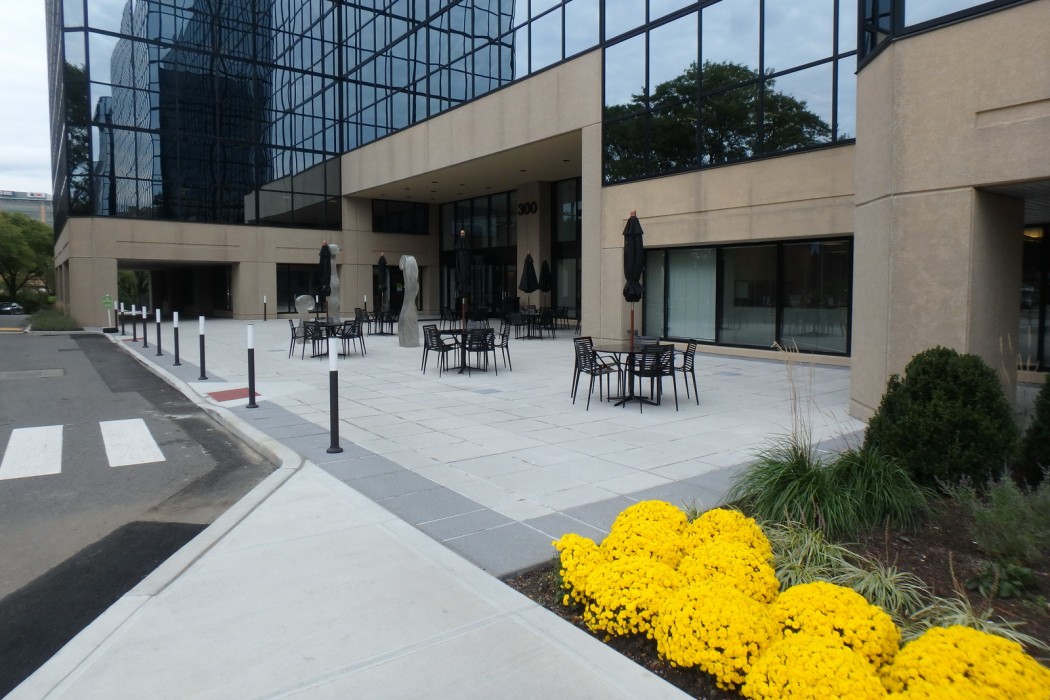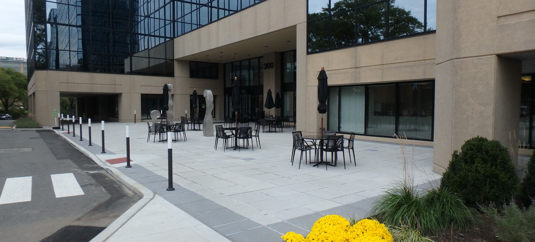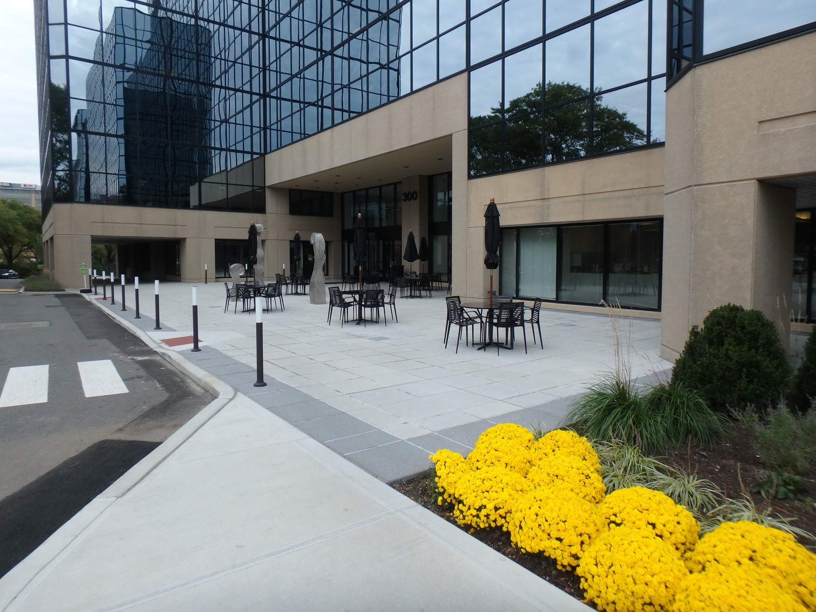 Based on the success of the first plaza project, WJE was retained to design repairs for and oversee the renovation of the remaining two plazas, in total encompassing an area of over 25,000 square feet. In addition to the plaza renovation described above, repairs at the remaining two plazas included reconfiguration of the plaza space, including the re-design of a concrete handicap ramp and inclusion of a new granite staircase at the location of an existing planter.