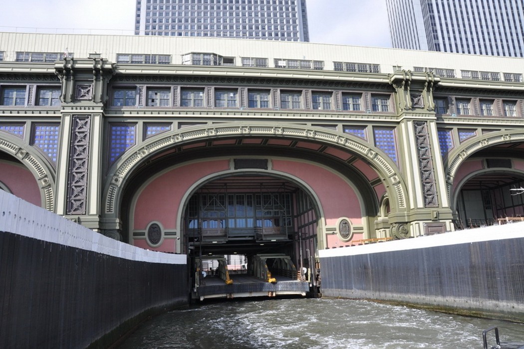 The Battery Maritime Building, located at the tip of Manhattan Island in New York City, is used as the ferry terminal for service to Governors Island’s Soissons Landing. The Beaux-Arts Battery Maritime Building was built from 1906 to 1909 as the Municipal Ferry Pier and listed on the National Register of Historic Places in 1976.