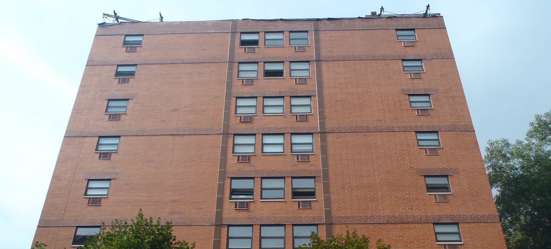 WJE was retained by Evergreen Real Estate Services in 2007 to investigate observed distress in the brick masonry cladding, determine the causes, and recommend repair procedures.