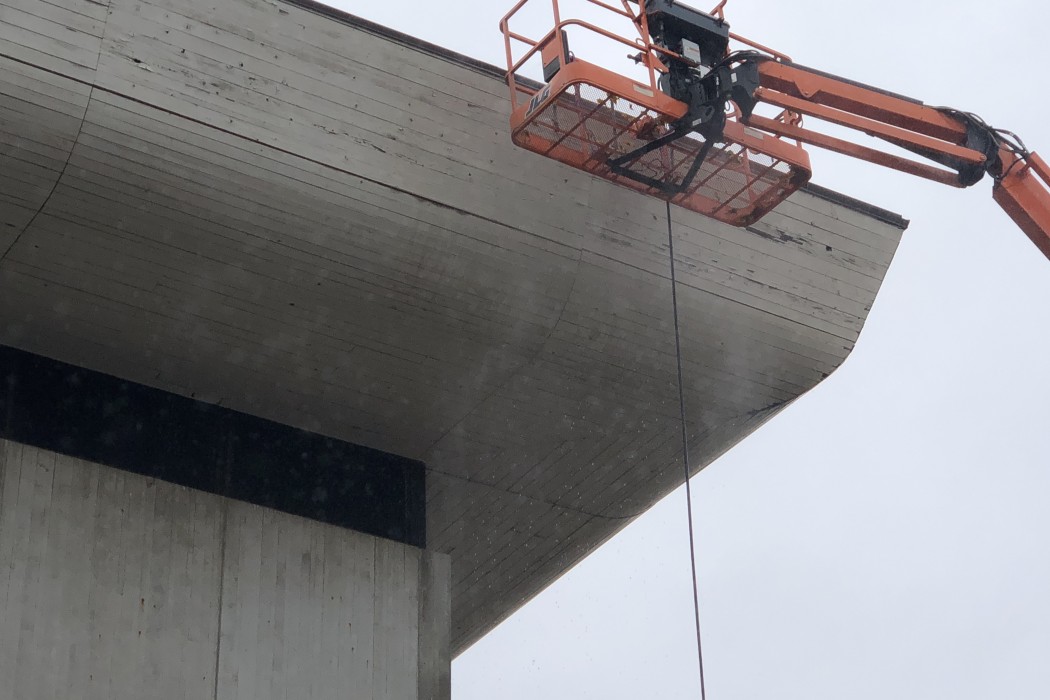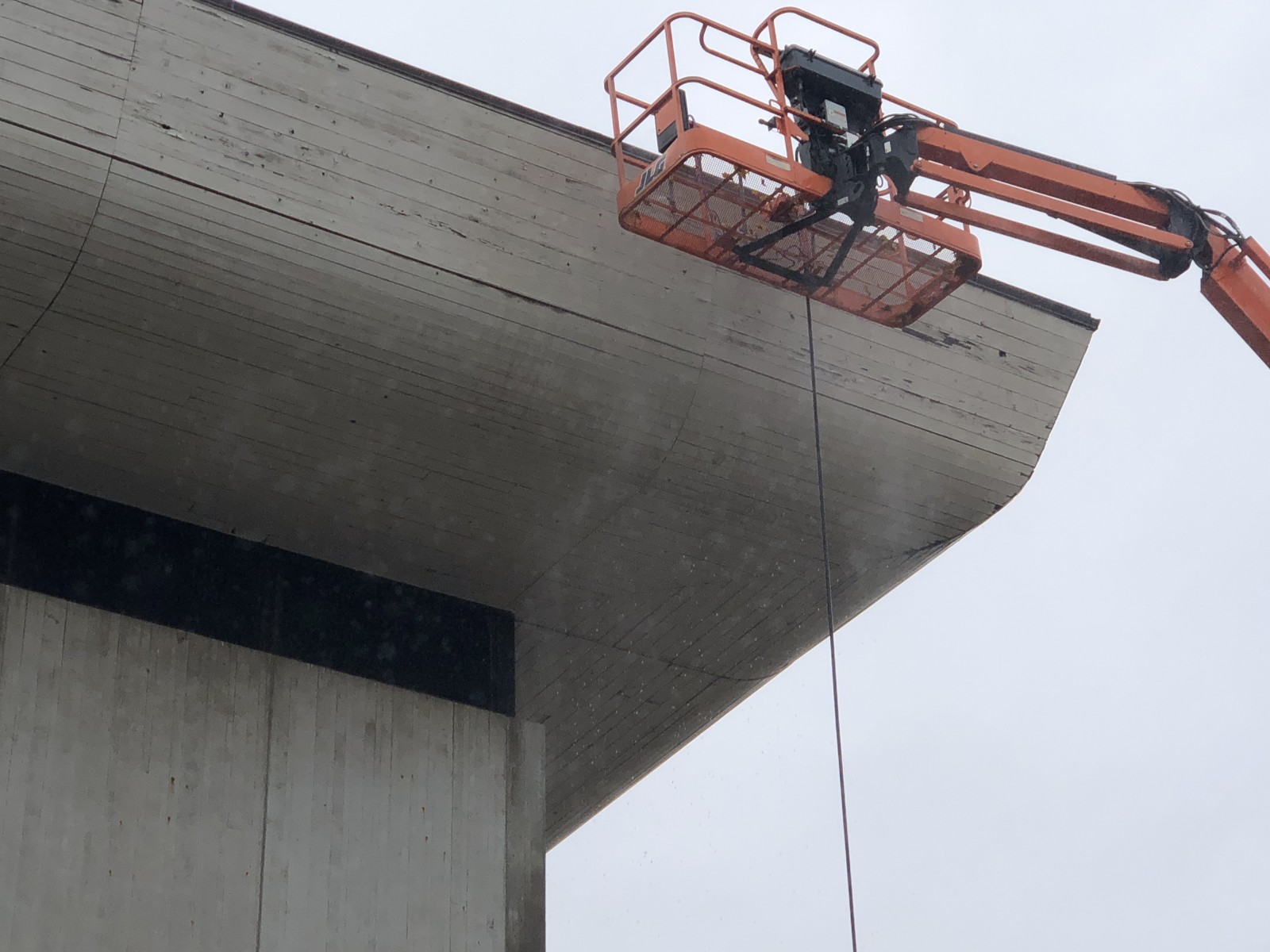 WJE investigated avenues for water infiltration as well as potential for condensation at the exterior walls of the museum. The services included a review of available documentation, a visual evaluation of the exterior enclosure, detailed observations at inspection openings in the interior finishes, water infiltration testing at the overhang and clerestory, and various methodologies—including smoke pens, infrared thermal cameras, and self-contained and remotely monitored sensors/data loggers—to evaluate air temperature and relative humidity, surface temperatures, and building pressurization.
