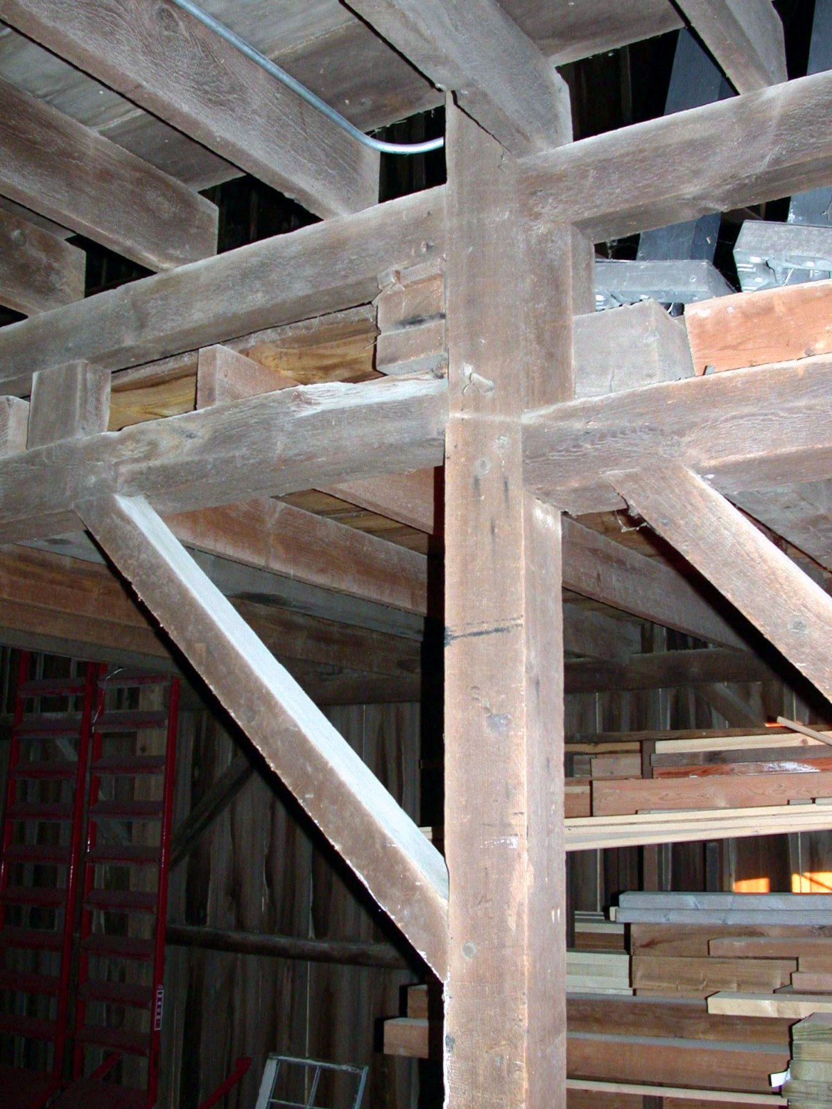 WJE's field investigations were performed to document the structure's geometry, extent of distress and decay, and previous repairs to the 125-year-old building. Wood material and structural analyses of the building frame and foundation were performed as they related to anticipated snow, wind, self-weight, and soil loads. Wood framing members were visually examined and assessed to help characterize lumber grades and identify allowable floor loads for potential storage. It was determined that the barn could be salvaged if appropriate storage load limits were established and the wood members were properly treated and protected; however, instabilities within the foundation needed to be addressed. WJE developed prioritized repair recommendations. WJE also prepared detailed repair documents for temporary shoring and support of the barn to permit underpinning the structure at the weakened foundation as well as details to address weakened framing components and selective rebuilding of the foundation.
