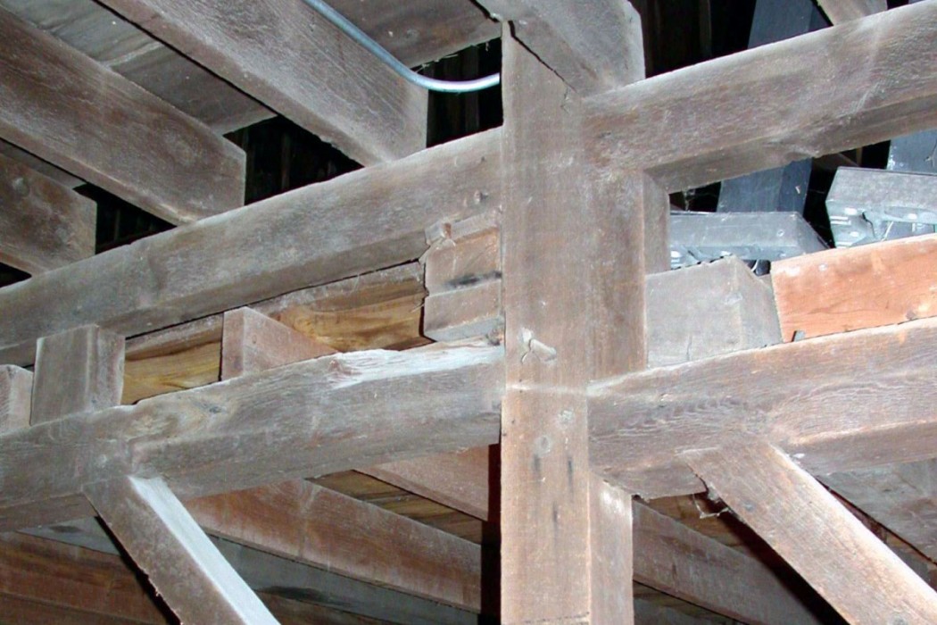 Leans and cracks within the concrete foundation walls and corresponding deformations within the timber framing raised concerns regarding the overall stability of the barn and the adequacy of this structure to support anticipated loads. WJE performed a structural evaluation of the barn to determine if this structure could be salvaged, to identify allowable floor load capabilities, and to develop prioritized repair recommendations along with detailed repair documents to address structural deficiencies.