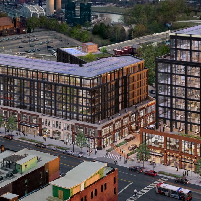 Cleveland’s Intro (formerly Market Square) is a new-construction mixed-use development at 25th Street and Lorain Avenue in Cleveland, Ohio. The project consists of two high-rise buildings—a nine-story residential building with first-floor retail and basement parking and an eleven-story office building with first-floor retail and parking from the basement to the third floor.