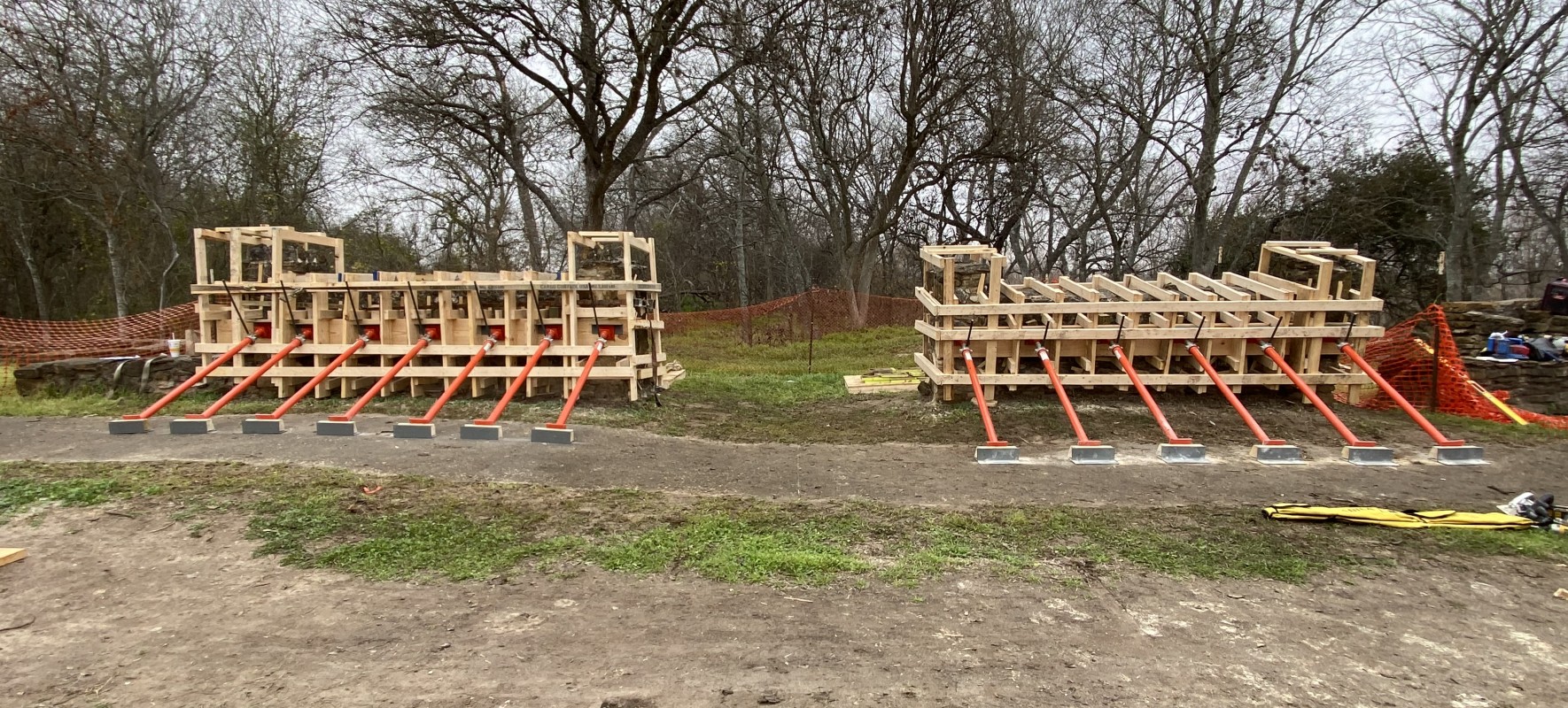 Over time, both the west and east sections of the North Gate wall feature had developed a southerly lean with the east wall leaning 11.23 degrees by 2019. Due to its rotation, the west wall section had developed a two-inch crack between its east-end pier and its wall body.
