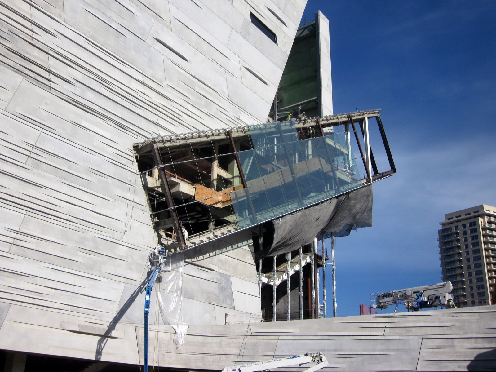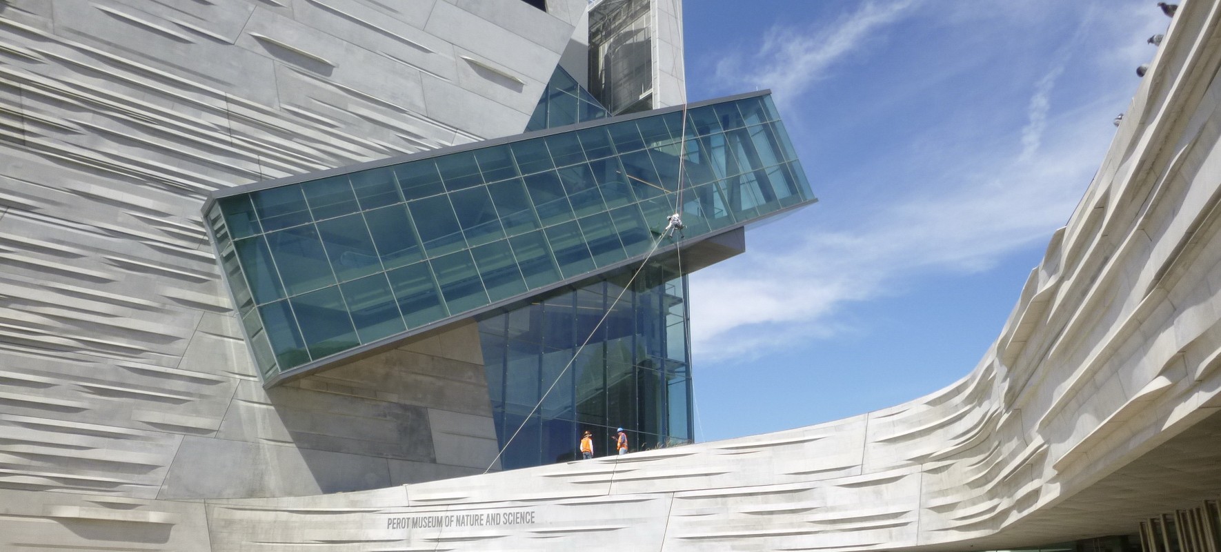 The Perot Museum of Nature and Science is located in Dallas, Texas. The unique structure is comprised of individually unique precast concrete panels utilizing dual sealant joints between panels. A glass-encased escalator is mounted along the exterior of the structure on the south elevation. The structure also features a plinth roof at the lower level, which includes skylights and unites the building structure with the natural environment.