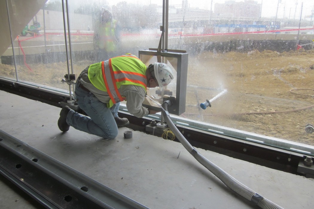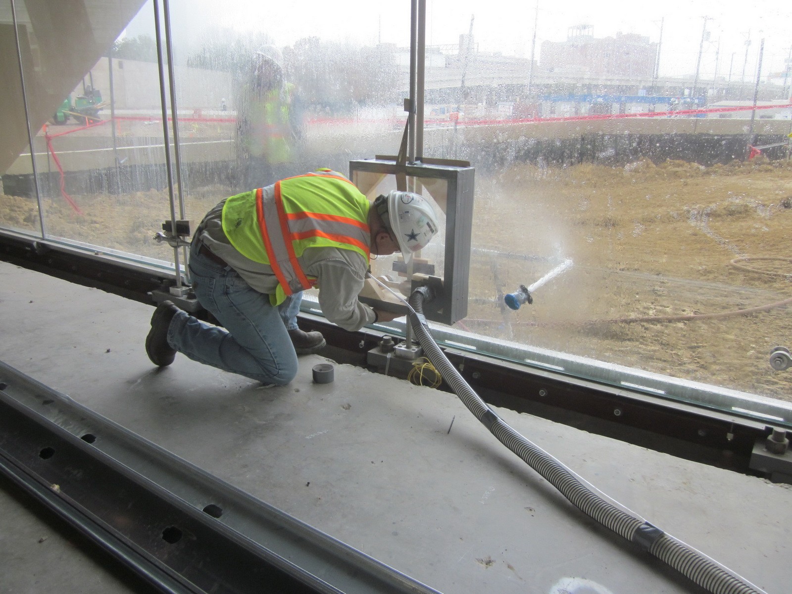 WJE performed approximately 150 individual water tests, employing ASTM and AAMA testing procedures. WJE also witnessed fifty tests performed by independent testing agencies. Where leakage was observed, WJE provided guidance on the proper remedial measures to address the leakage. Follow-up testing was also performed at affected areas to verify the adequacy of remedial measures.