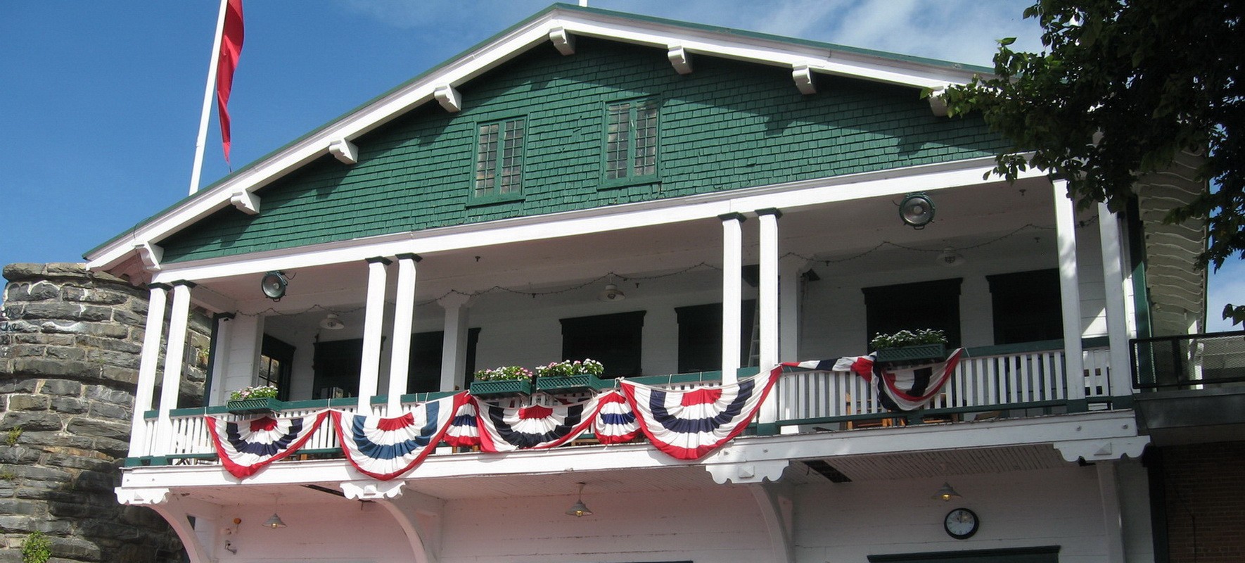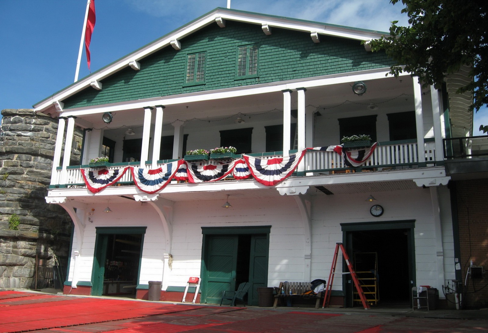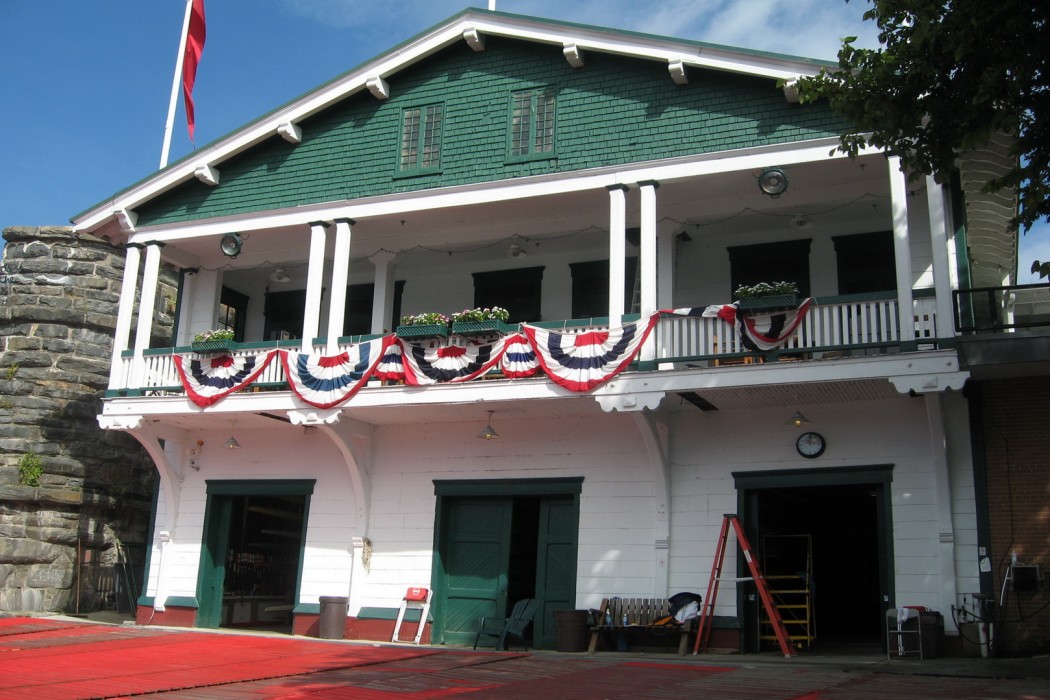 The historic Potomac Boat Club houses a Washington D.C. rowing club of the same name that comprises two buildings. The main structure, the Potomac Boat House, was constructed in 1908 and features a cantilevered deck that runs the length of the second story. The addition was constructed in 1961, with additional construction at the upper story in 1991. The roof of the 1961 addition also features a paved roofing system that is used as a gathering space. The Potomac Boat House is listed in the Washington, D.C. and National Historic Registers.
